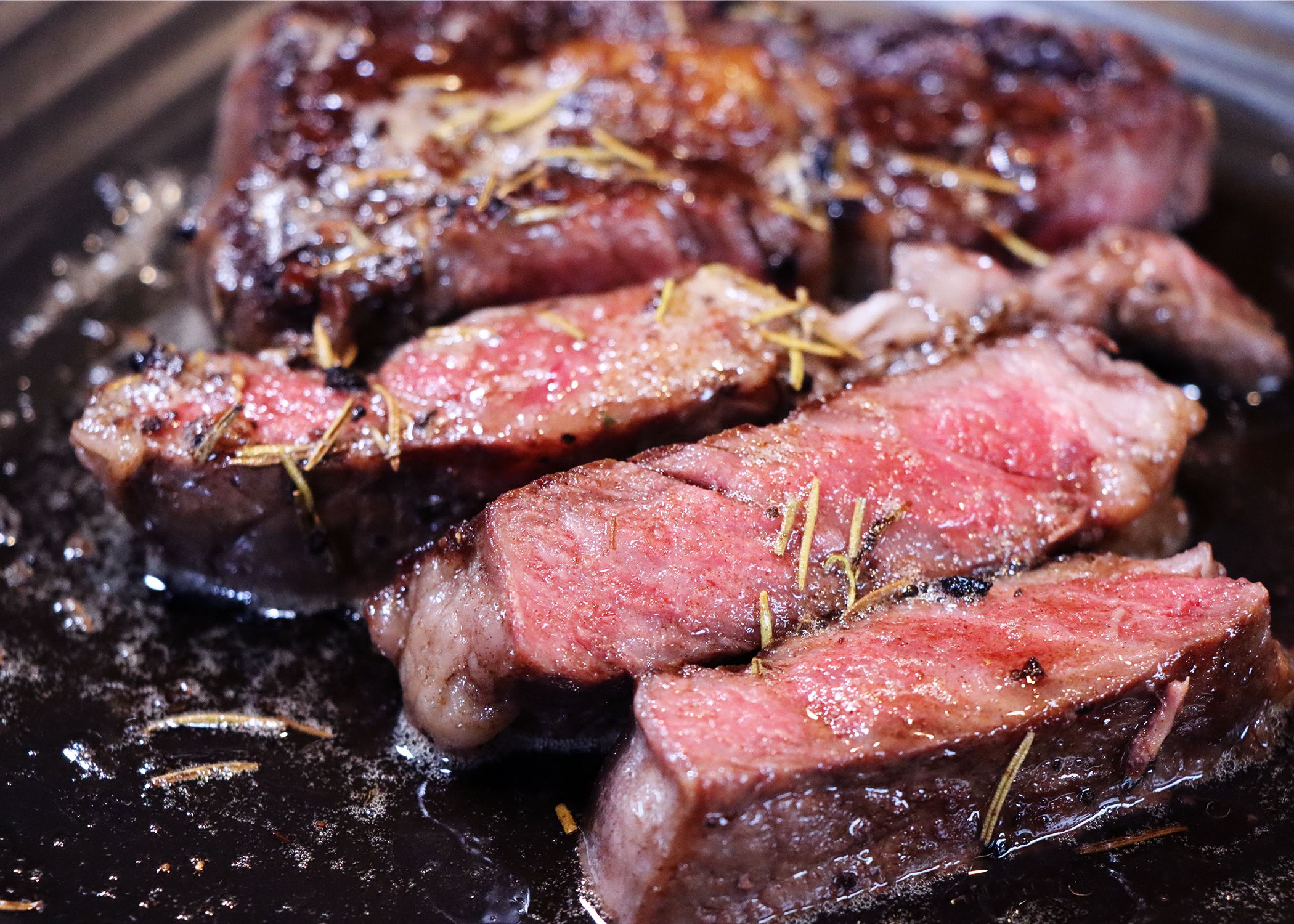 Once seared, transfer the steak to a cutting board. Unlike traditionally cooked steaks, a sous vided steak does not need to rest. It is ready to be served immediately.